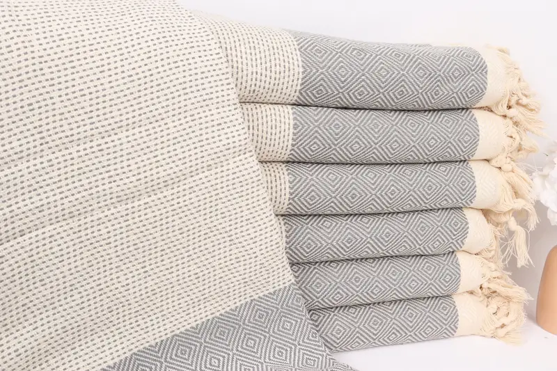 Kişiye Özel Koyu Gri Pamuklu Örtü, 79x103 İnç, Organik, Çizgili