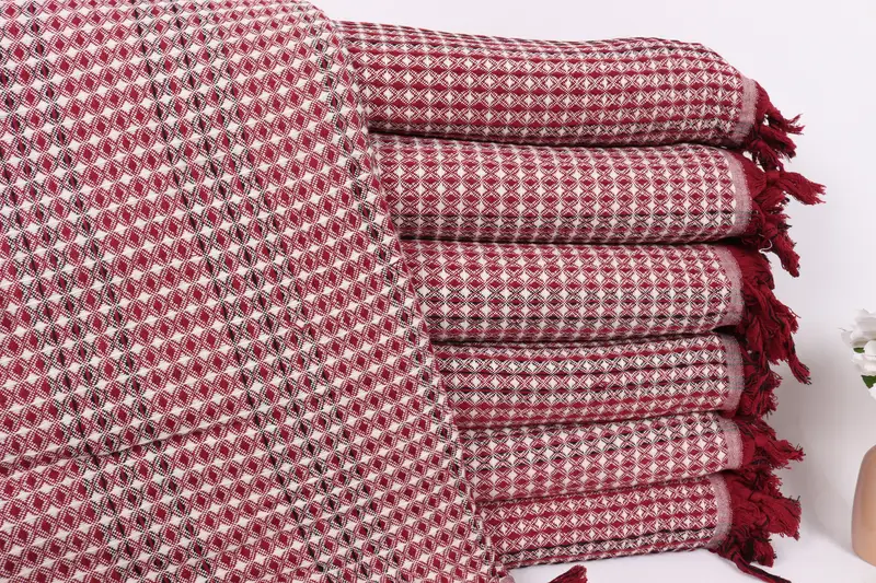 Çizgili Battaniye Bordo Pamuk Çift Kişilik Yatak Boyutu 71x95 İnç