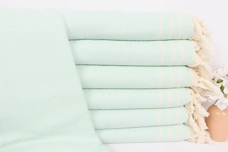 Diamond Dekoratif Mint Pamuk Battaniye, Çizgili Desen, 71x95 İnç