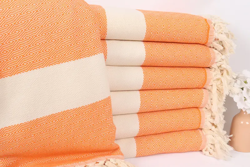 Turuncu Pamuk Kişiye Özel Elmas Atma Battaniye, 79x91 İnç