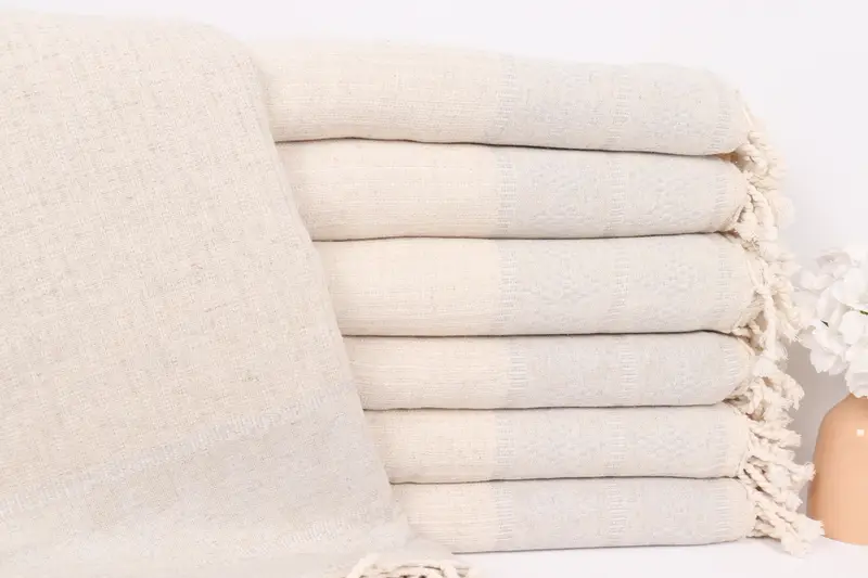 Masa Örtüsü Kilim Tasarım Açık Gri Keten Çiçek İşlemeli Battaniye, 87x99 İnç