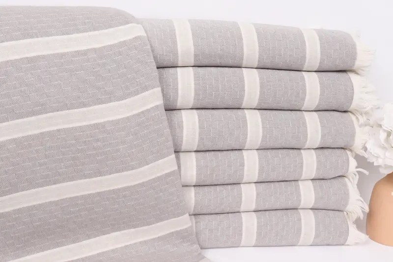 Koyu Gri-Açık Gri Pamuk Çizgili Battaniye, 83x95 İnç