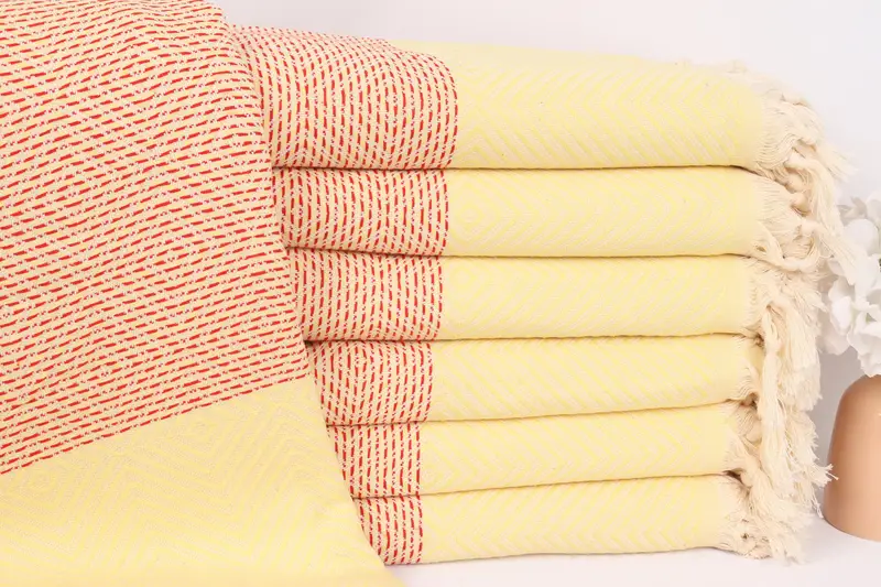 Diamond Battaniye Kırmızı-Sarı Pamuklu Atma, Dokuma, 79x91 İnç