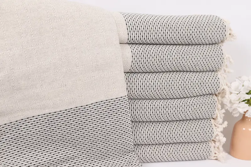 Puantiyeli Dokuma Atma Battaniye Siyah Pamuk 95x95 İnç