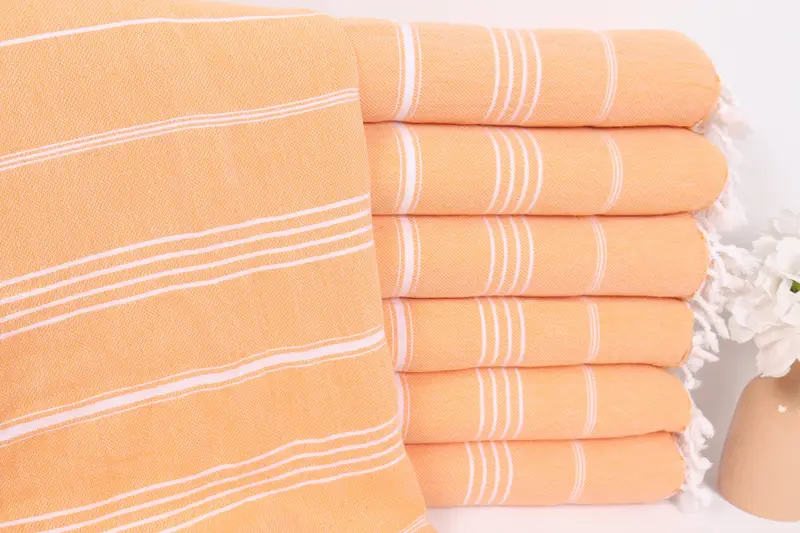 Açık Turuncu Pamuklu Monogram Battaniye, Nedime Hediyesi, 60x87 İnç