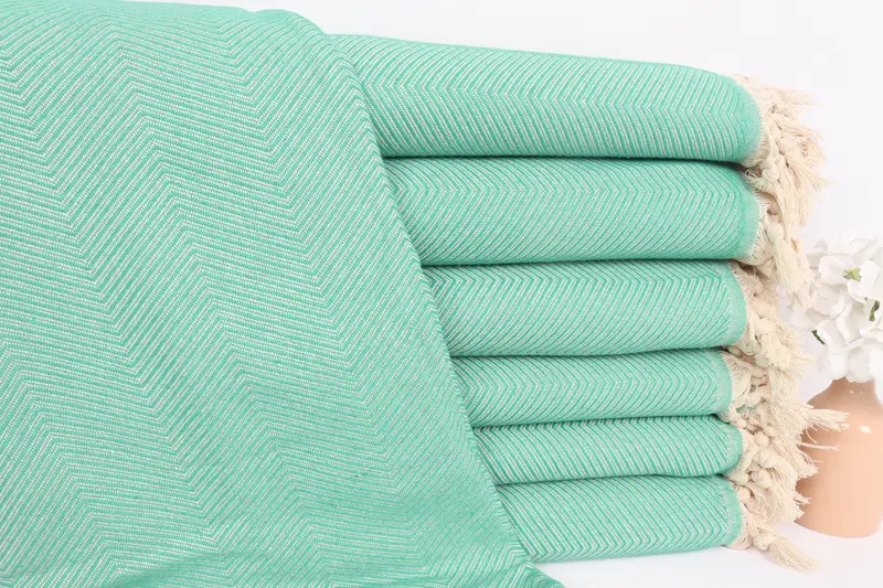Zig Zag Türk Battaniyesi Yeşil 67x83 İnç Organik Pamuk