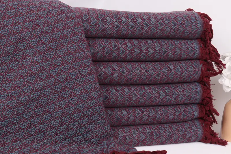 Özel Düğün Hediyeleri Koyu Turkuaz-Bordo Kalp Tasarımlı Battaniye, 75x87 İnç