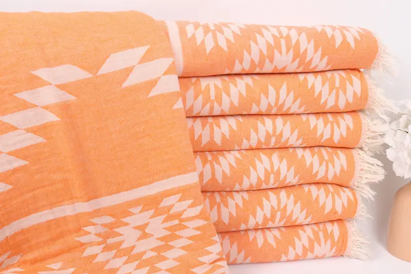 Kilim Battaniye Turuncu Çiçekli Pamuk Yatak Örtüsü, 56x83
