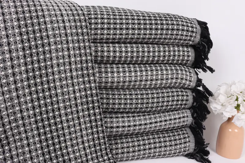 Çizgili Battaniye Siyah Pamuklu 71x95 İnç, Boho Örtü, Monogram