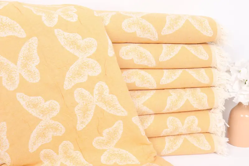 Kelebek Desenli Battaniye Organik Pamuk Dokuma Atkı 79x95 İnç