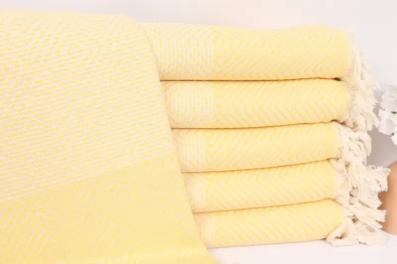 Sarı Kişiye Özel Pamuklu Battaniye, Elmas Örtü, 79x91 İnç