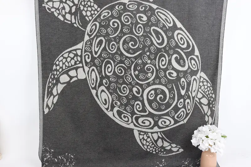Kişiye Özel Plaj Havlusu Monogramlı Türk Pamuğu Siyah, 40x71 İnç