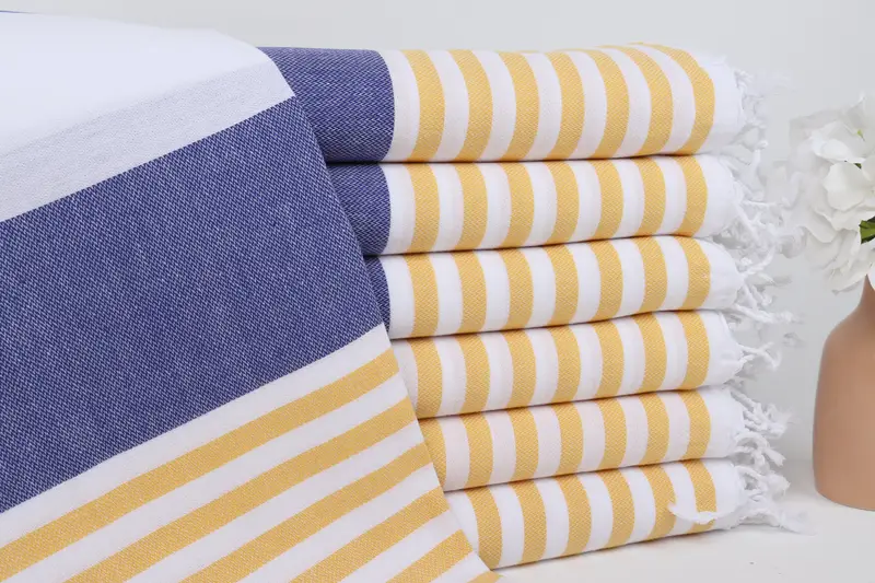 Gift Kişiye Özel Plaj Havlusu Lacivert-Sarı Pamuklu, 40x71 İnç