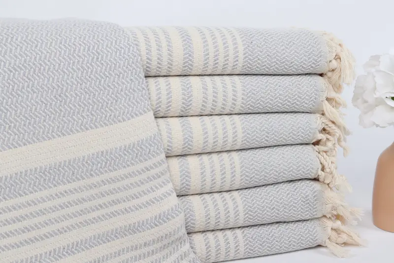 Türk Plaj Havlusu Kişiye Özel Açık Gri Çizgili, 40x71 İnç