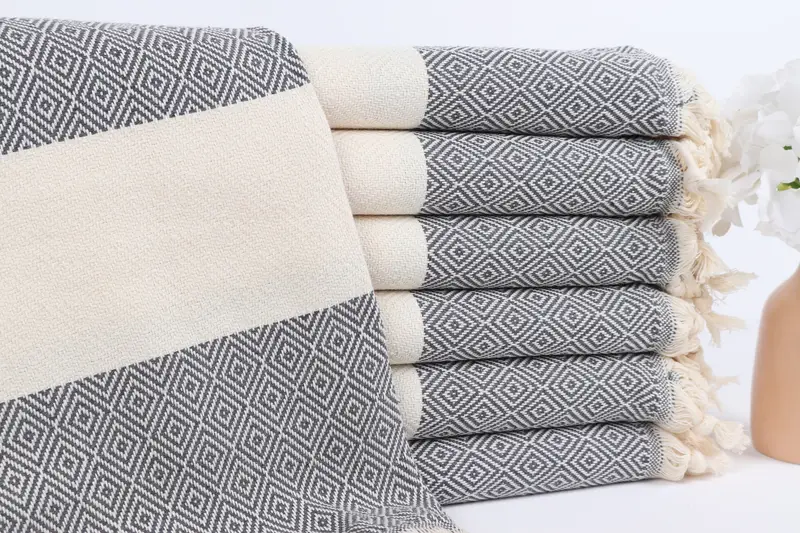 Kişiye Özel Türk Plaj Havlusu Koyu Gri Elmas, 40x71 İnç