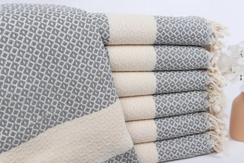 Türk Plaj Havlusu Gri Elmas 40x71 İnç Organik Pamuk