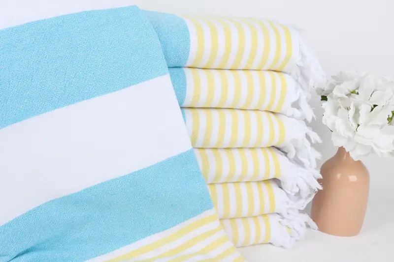 Noel Hediyeleri Turkuaz-Sarı Çizgili Havlu, 36x67 İnç