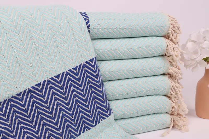 Kişiye Özel Nane-Sax Mavi Chevron Havlu, 40x71 İnç