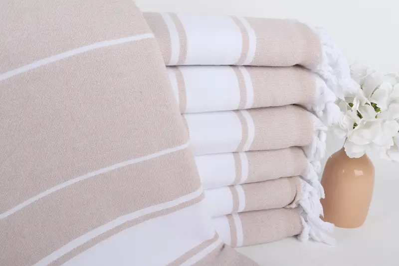 Aile Hediyesi El Yapımı Pamuk Havlu Bej Çizgili, 36x63 İnç