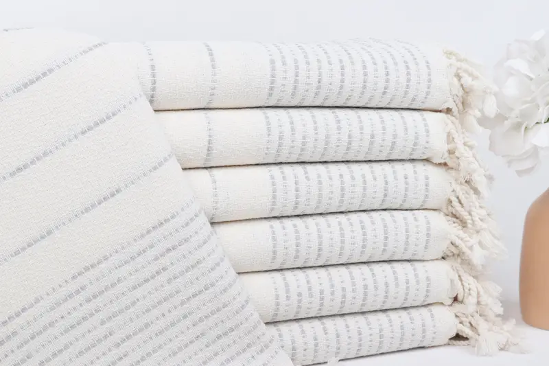 Kişiye Özel Türk Havlusu Açık Gri Çizgili, 38x71 İnç