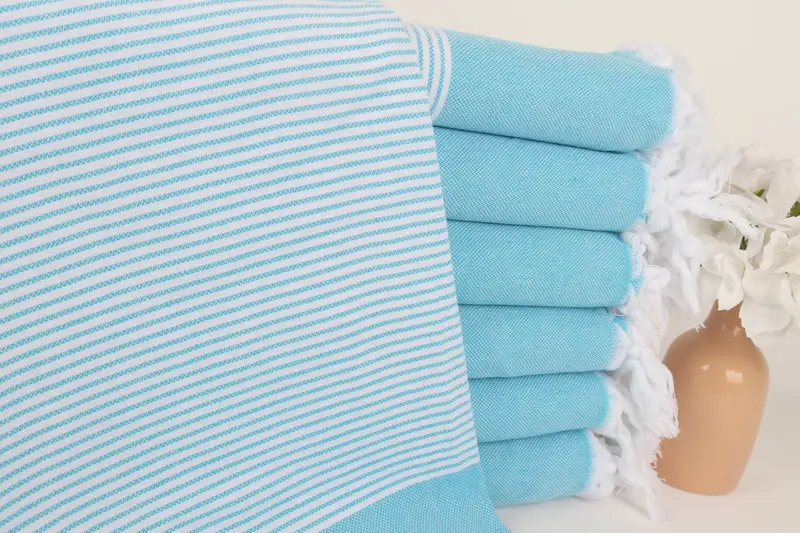 Plaj Hediye Havlusu Turkuaz Çizgili, Özel Logo, 40x71 İnç