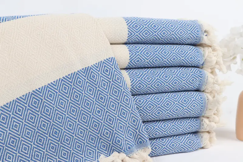 Kişiye Özel Plaj Havlusu Mavi 40x71 İnç Organik Türk Pamuğu