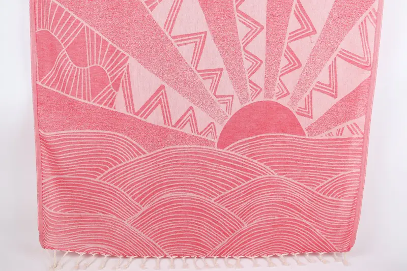Kişiye Özel Türk Plaj Havlusu Kırmızı Sıcak Hava Balonu, Organik Pamuk, 40x67 İnç