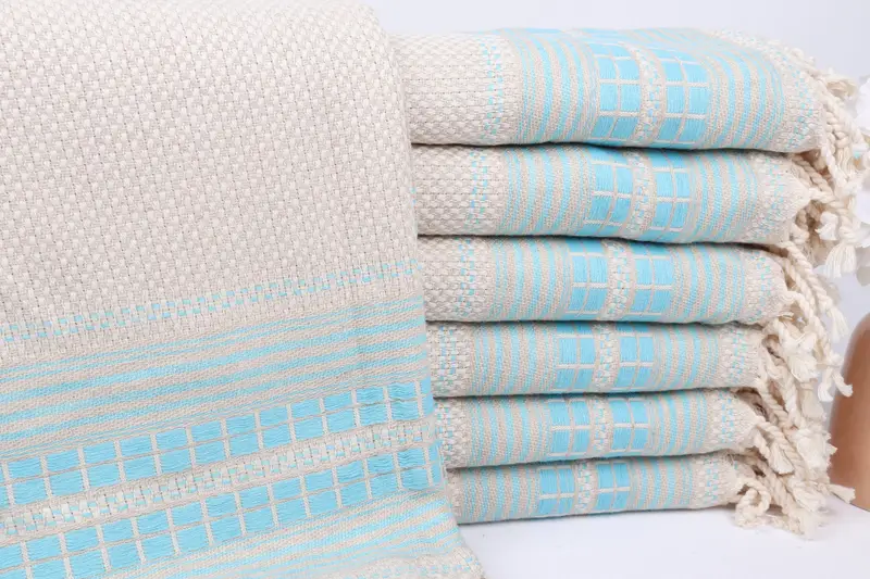Türk Plaj Havlusu Kişiye Özel Turkuaz, 38x65 İnç Organik Pamuk
