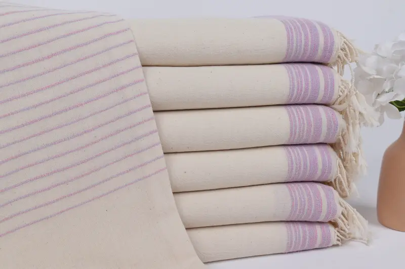 Türk Havlusu Plaj Pembe-Lila Çizgili, 36x67 İnç