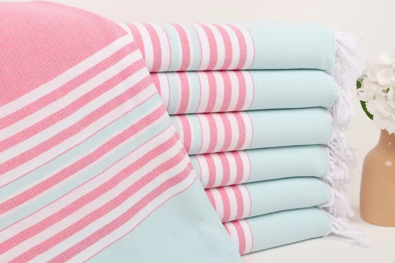 Kişiye Özel Fuşya-Nane Çizgili Havlu, Özel Plaj Havlusu, 40x67 İnç