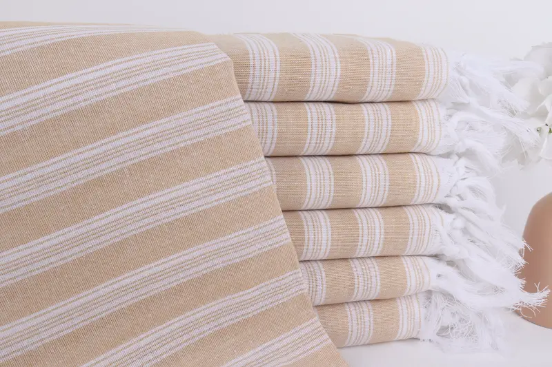 Kişiye Özel Hediye Hardal Çizgili Havlu Bej, 40x71 İnç