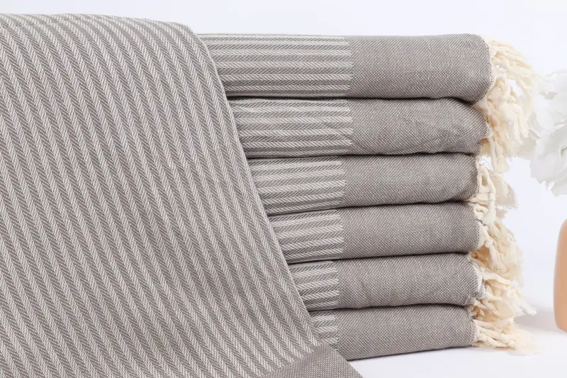 Monogram Plaj Havlusu Özel Türk Pamuk Gri Çizgili, 40x71 İnç