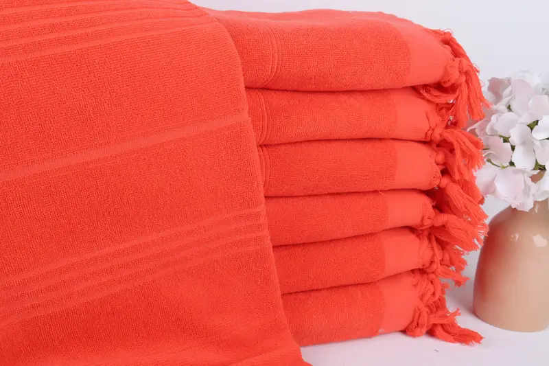 Türk Havlusu Plaj Mercan Çizgili Pamuk, 36x71 İnç
