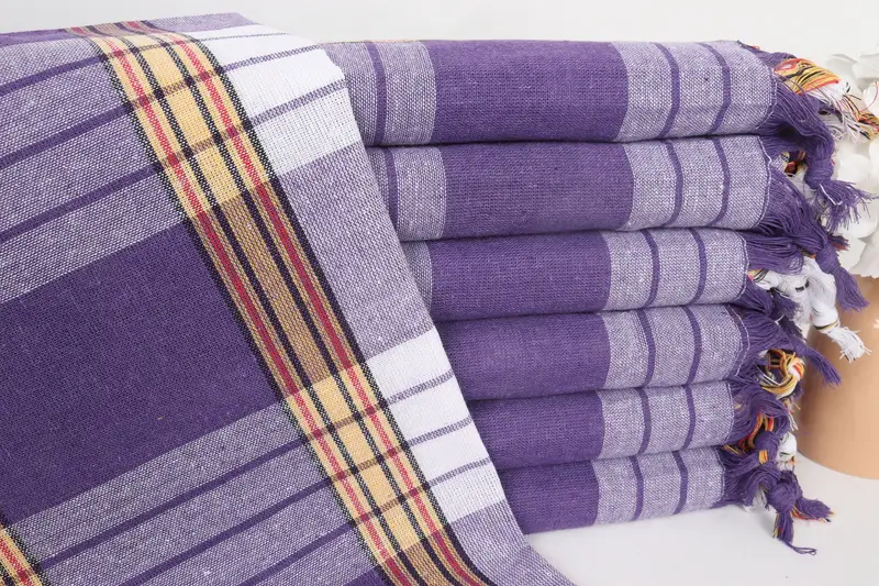 Monogram Plaj Havlusu Mor Çizgili, 32x67 İnç Organik Türk Pamuğu