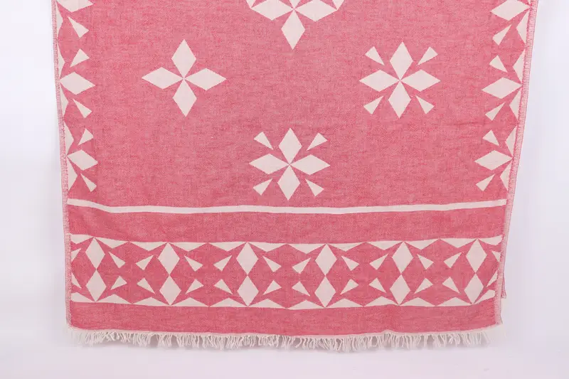 Nakışlı Plaj Havlusu Türk Pamuk Kırmızı 36x67 İnç