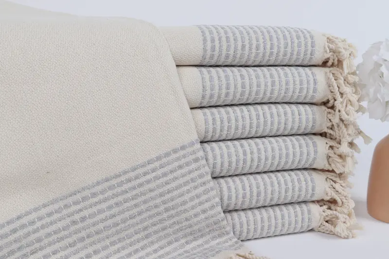 Türk Havlusu Plaj Özel Açık Gri Çizgili, 36x69 İnç