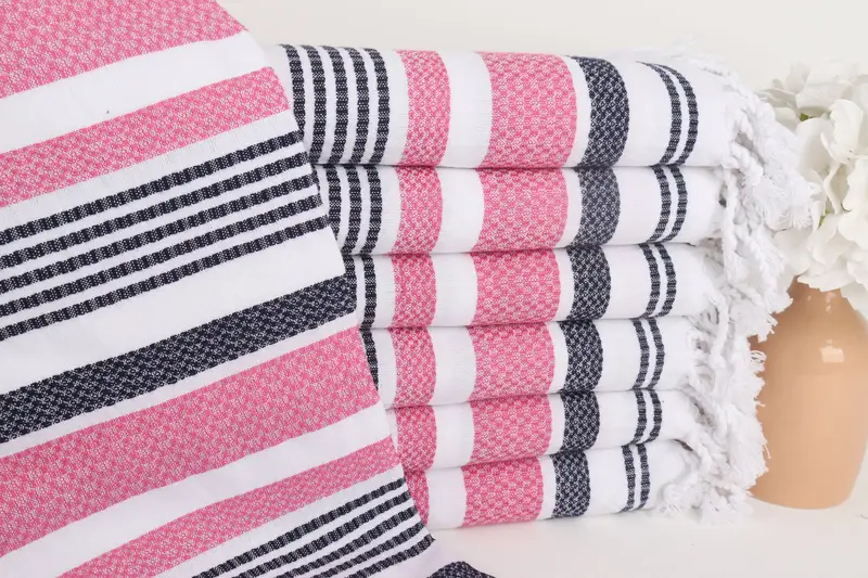 Lacivert-Pembe Pamuk Havl...