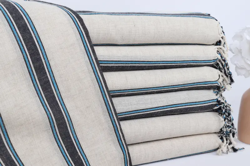 Kişiye Özel Türk Havlusu Lacivert-Turkuaz Çizgili, 38x71 İnç