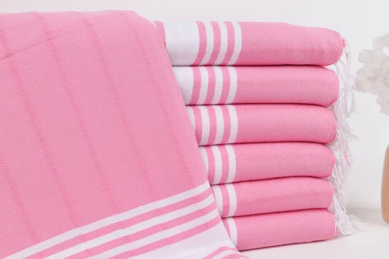 Monogramlı Plaj Havlusu Türk Açık Pembe Çizgili, 40x71 İnç