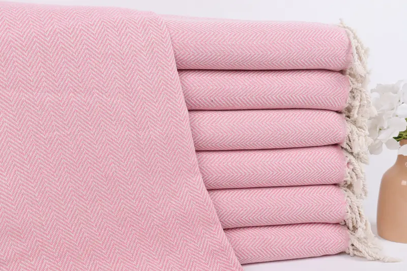Türk Havlusu Plaj Monogramı Pembe Balıksırtı, 40x71 İnç