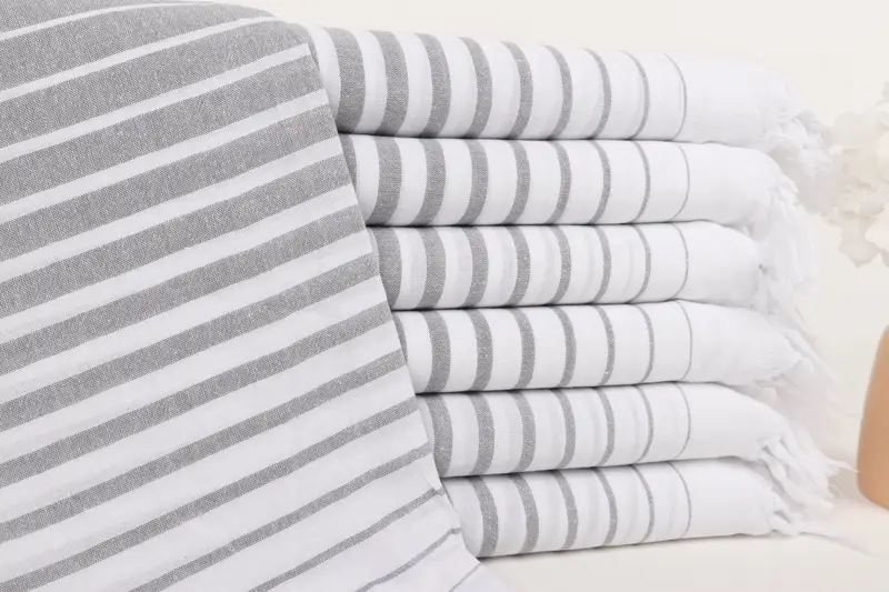 Monogramlı Plaj Havlusu Gri Çizgili Türk Pamuğu, 36x67 İnç