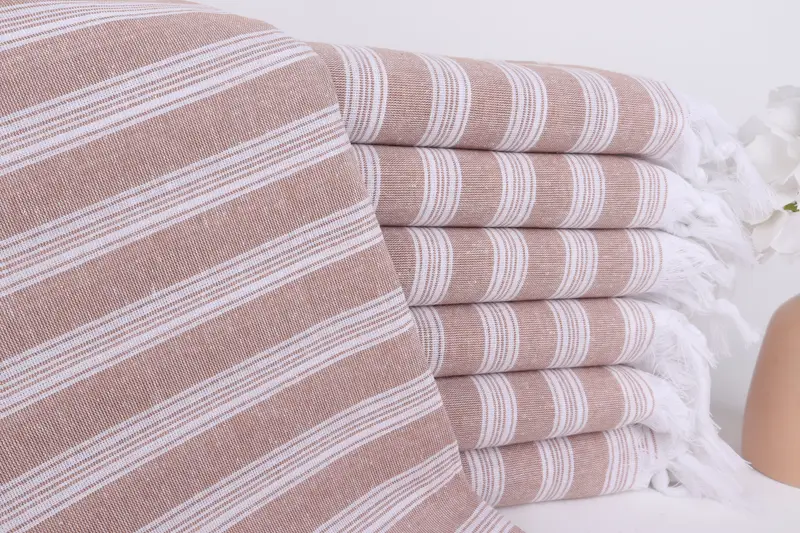 Turkish Towels Beach Kişiye Özel Kahverengi Çizgili Havlu, 40x71 İnç