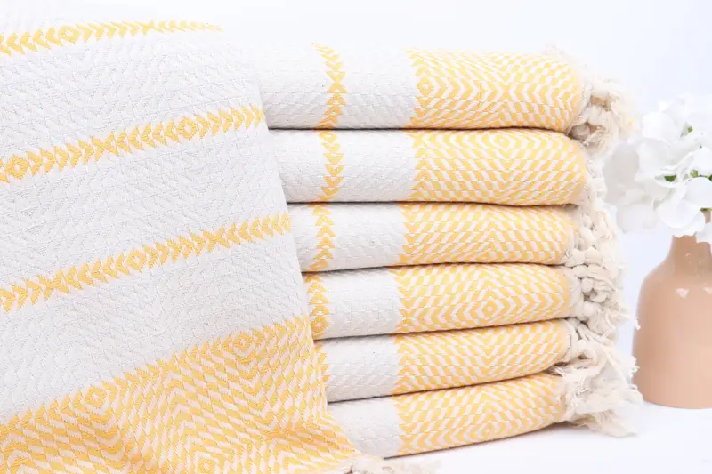 Monogram Plaj Havlusu Monogramlı Türk Pamuk Hardal Çizgili, 40x79 İnç