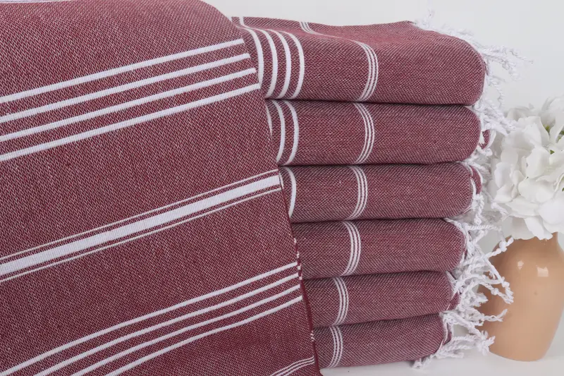 Bordo Havlu Çizgili Plaj ...
