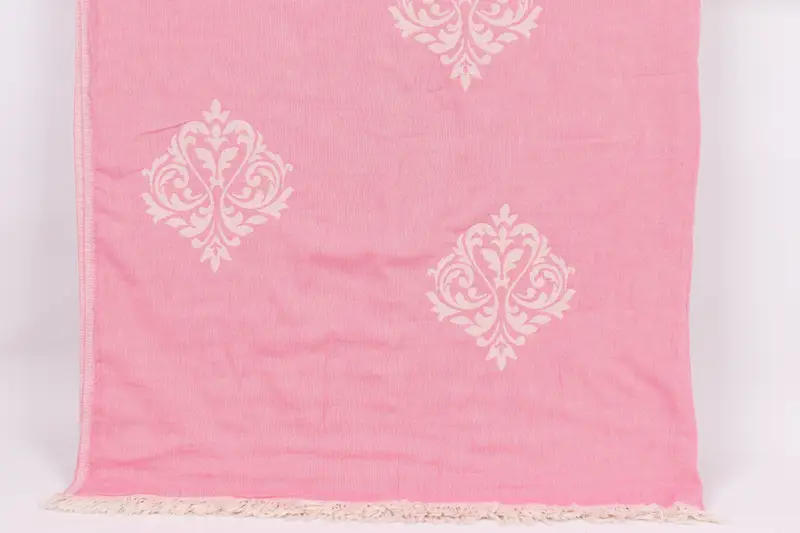 Barok Pembe Pamuklu Battaniye Dokuma Yatak Örtüsü, 75x95 İnç