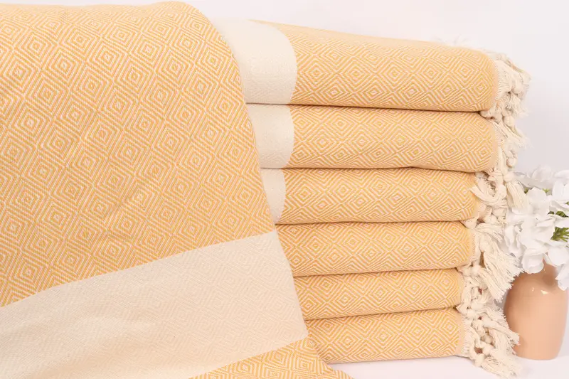Hardal Pamuklu Elmas Dokuma Battaniye, 79x95 İnç
