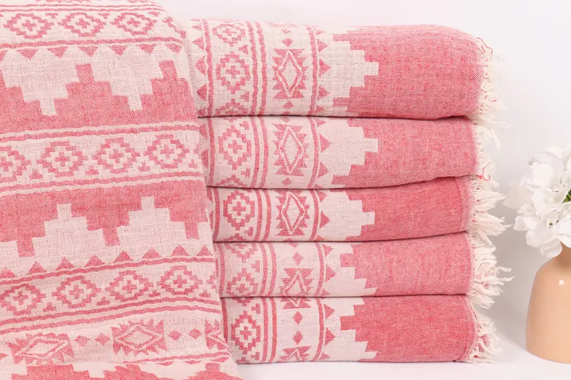 Özel Kırmızı Pamuklu Çiçek Örtü, 79x91 İnç, Country Çiftlik Evi Stili