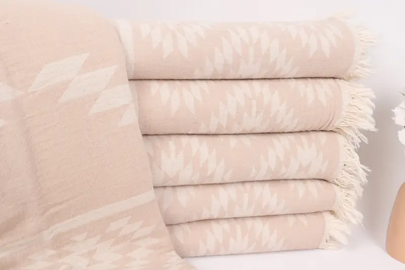 Bej Pamuklu Battaniye Çiz...
