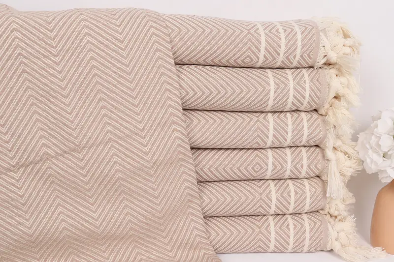 Pamuk Bej 71x95 İnç Atkı, Organik Geri Dönüştürülmüş Malzeme, Nakışlı