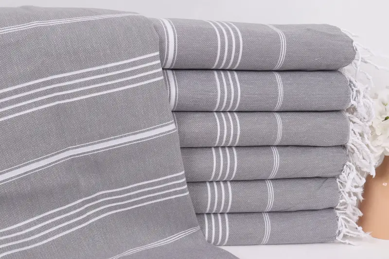 Çizgili Türk Pamuk Battaniye Koyu Gri Bej, 60x87 İnç